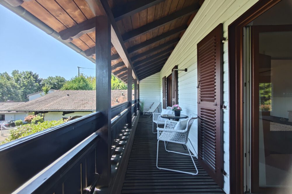 Zwei Zimmer haben direkten Zugang zum Balkon mit Blick in den Garten und toller Aussicht über den Ort.