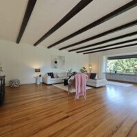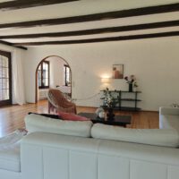 Ebenfalls befinden sich im Erdgeschoss das Esszimmer, ein riesiges Wohnzimmer mit Holzdielen und