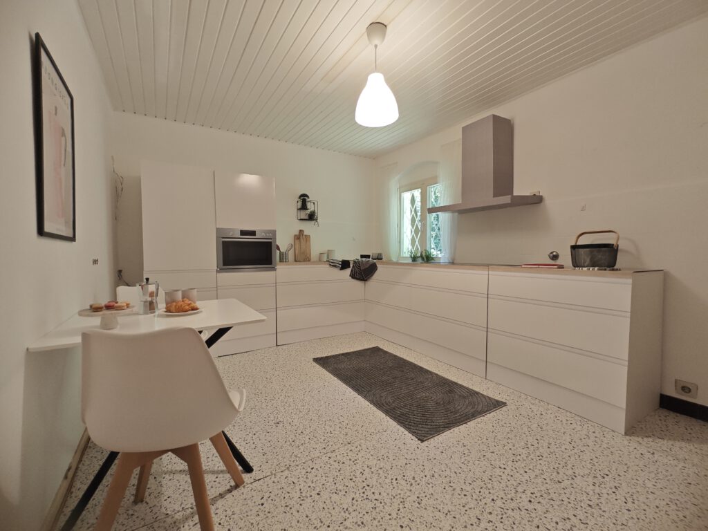 Durch die Haustür betreten Sie die Eingangshalle, links daneben befindet sich das Kaminzimmer. Die Fußböden hier sind mit Travertin und mit Fußbodenheizung ausgestattet. Daneben liegt die gemütliche Küche mit Vorratskammer.
