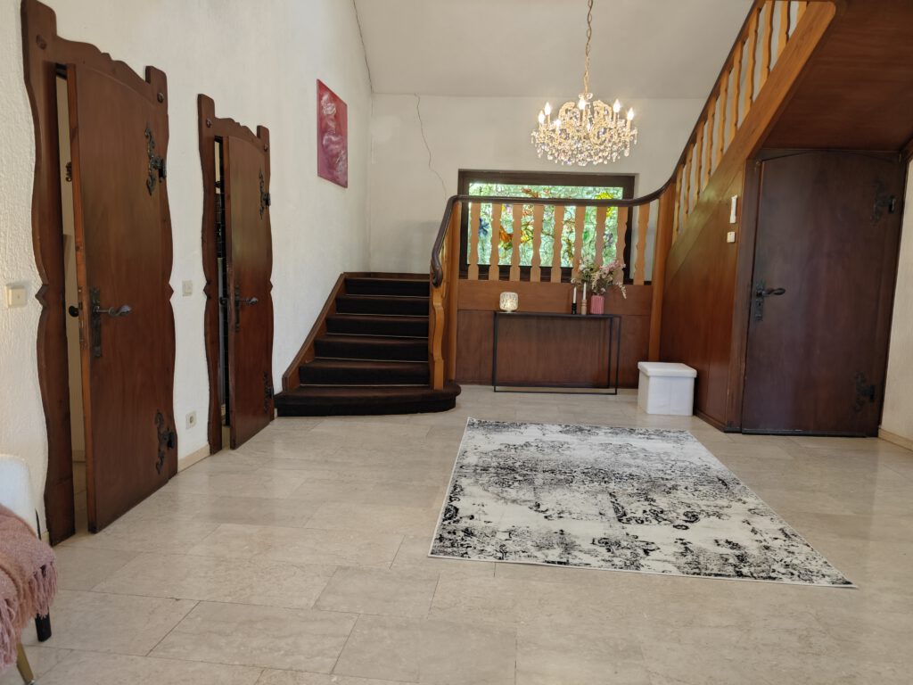 Auf der rechten Seite folgen dann eine Garderobe, ein Gäste-WC, ein großes Bad mit Wanne und Dusche sowie das imposante Treppenhaus.