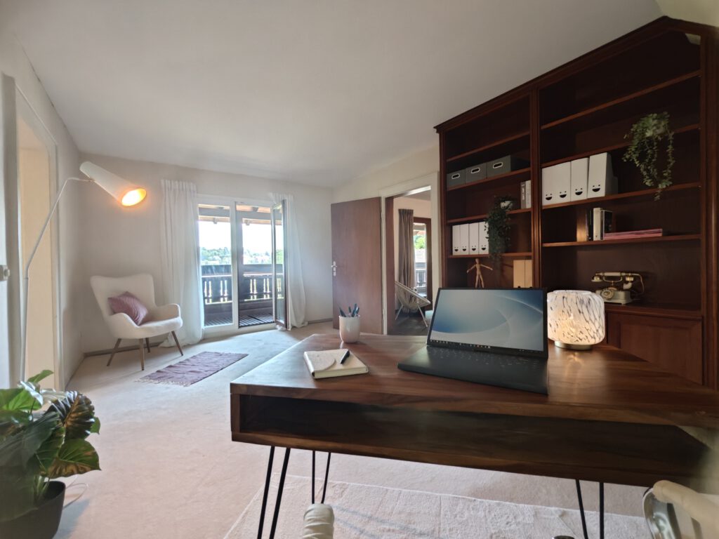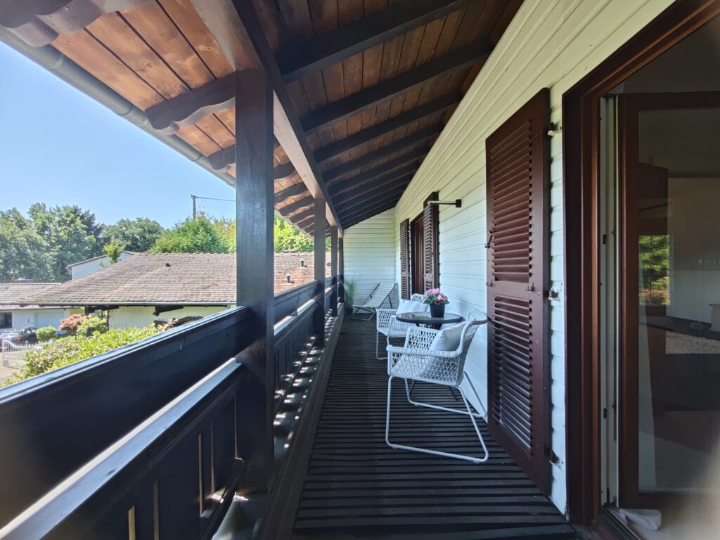 Zwei Zimmer haben direkten Zugang zum Balkon mit Blick in den Garten und toller Aussicht über den Ort.