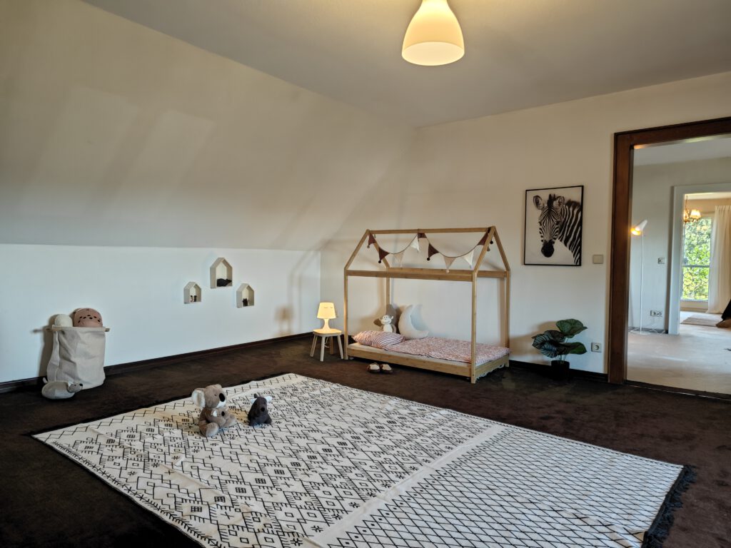 Links davon gelangt man in drei weitere Zimmer, die beispielsweise als Schlafzimmer, Kinderzimmer und Arbeitszimmer genutzt werden können.
